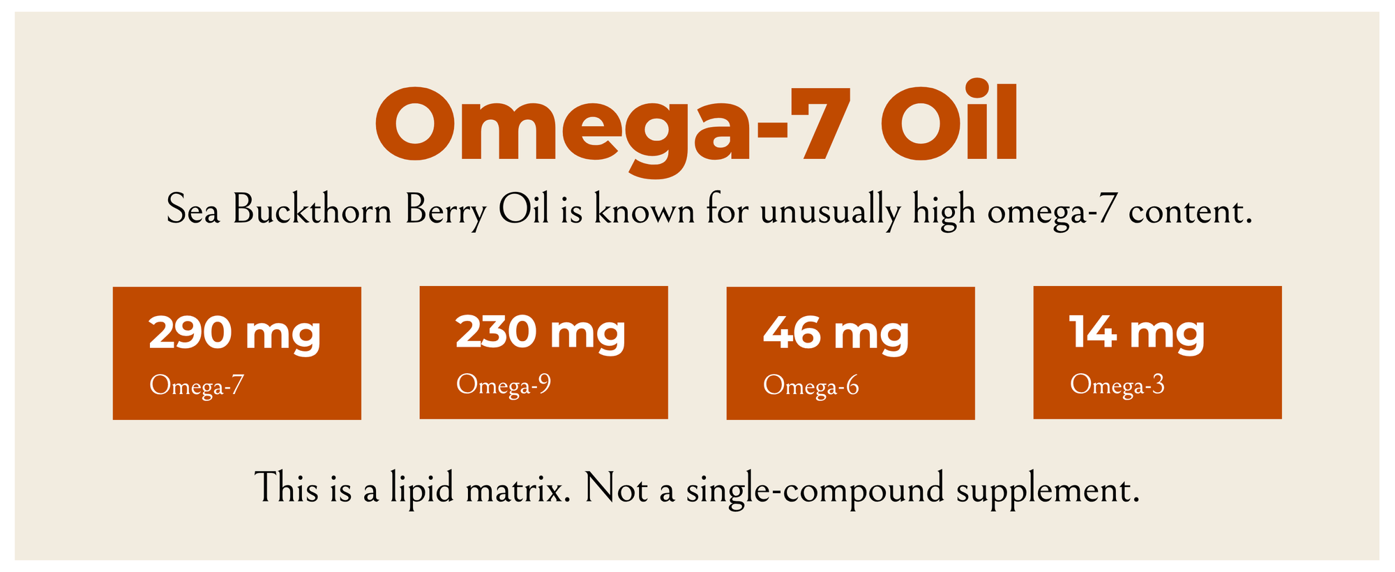Sea buckthorn oil contains various essential fatty acids, notably Omega-3, Omega-6, Omega-9, and the relatively rare Omega-7.